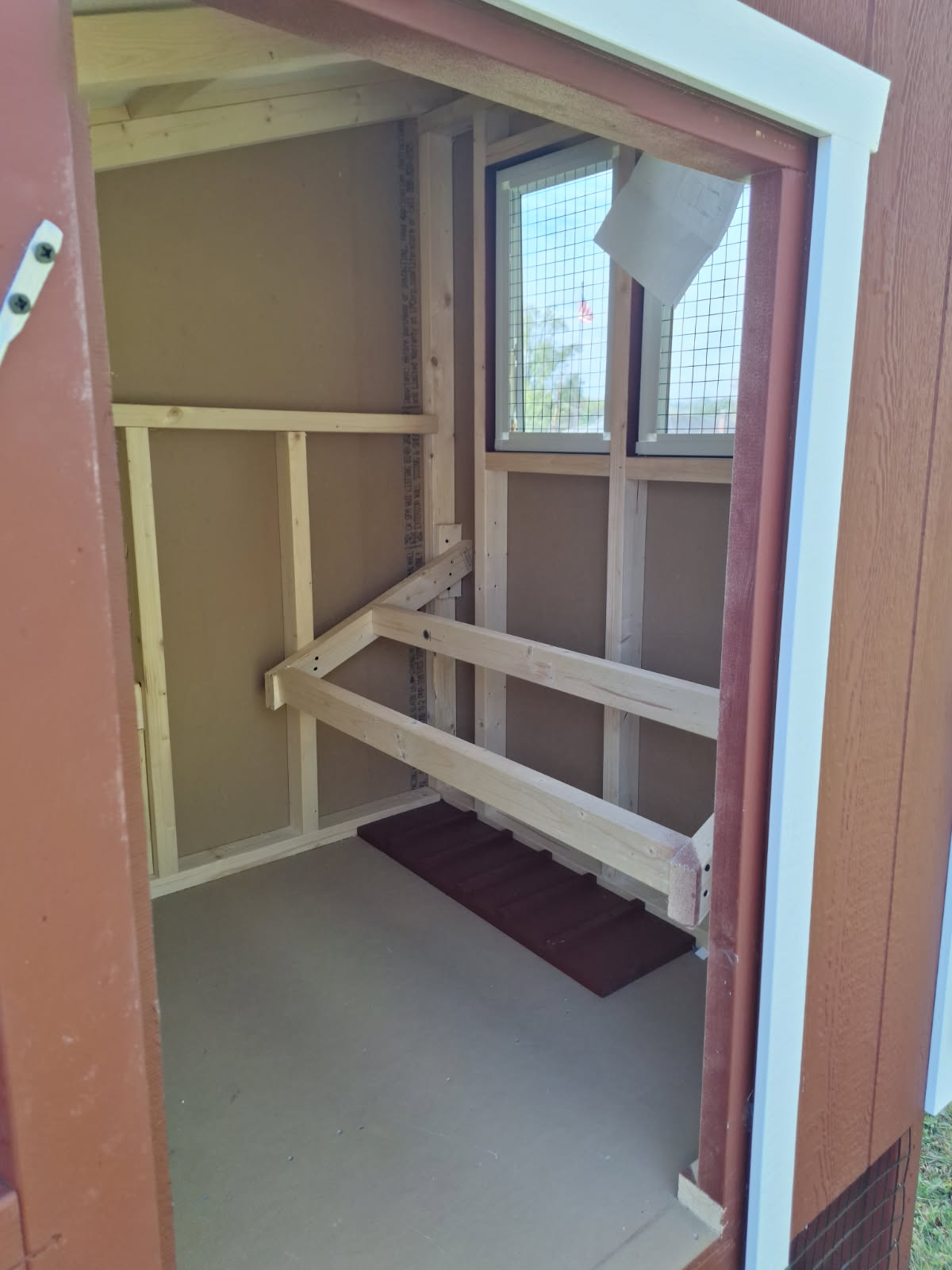 Includes: +LP Smart Siding(Red) +Trim(White) +Metal Roof(White) +3' Single Door +Chicken Door +Leanto +Nesting Boxes +Roosting Bars +2x3 Framing +4x4 PT Runners