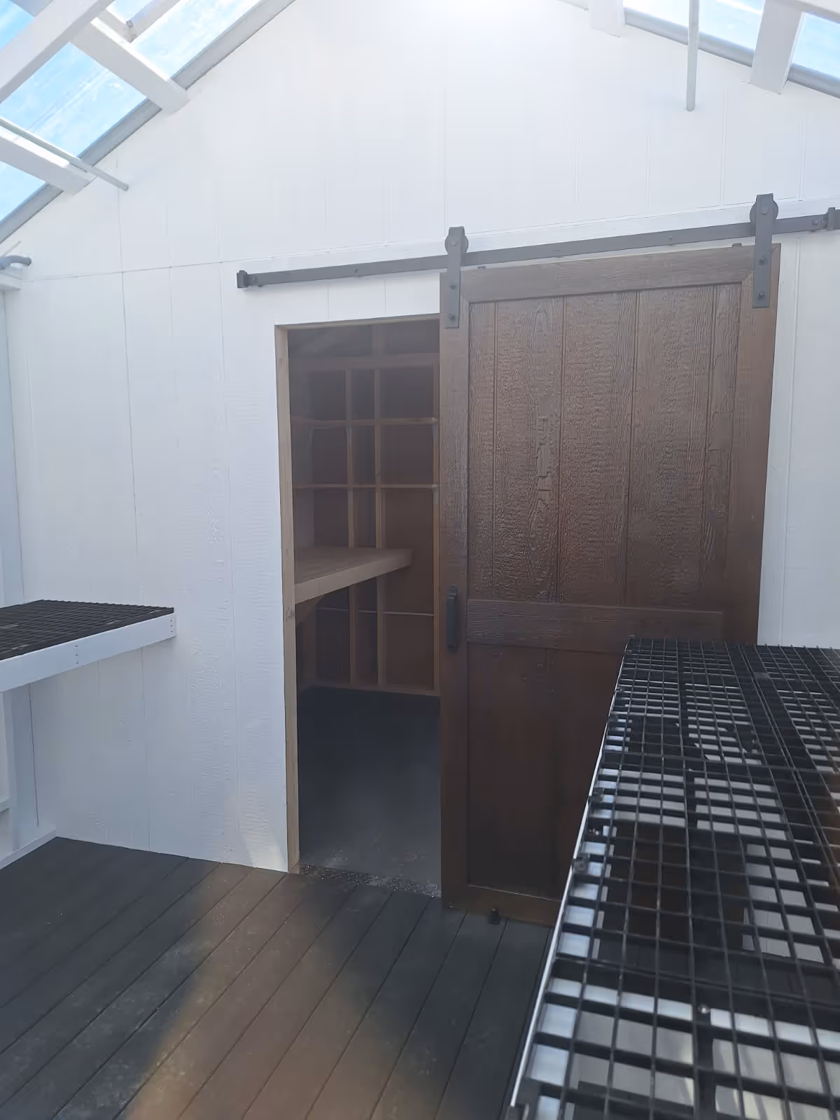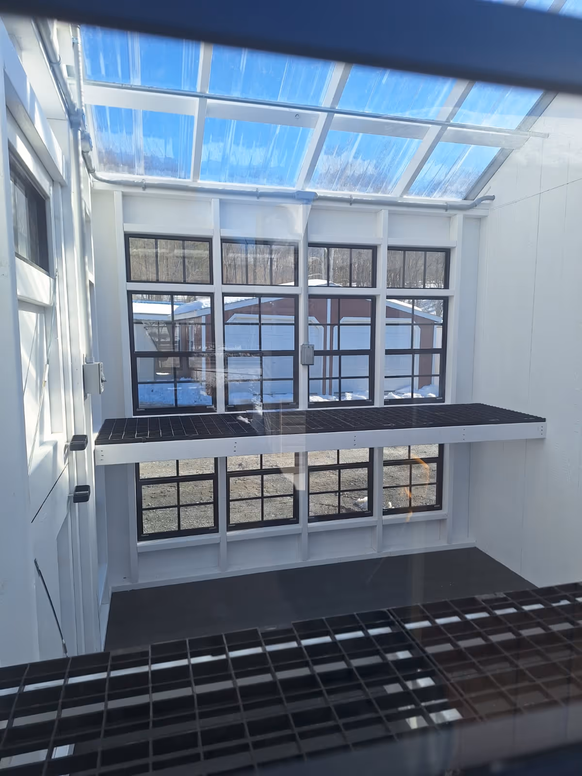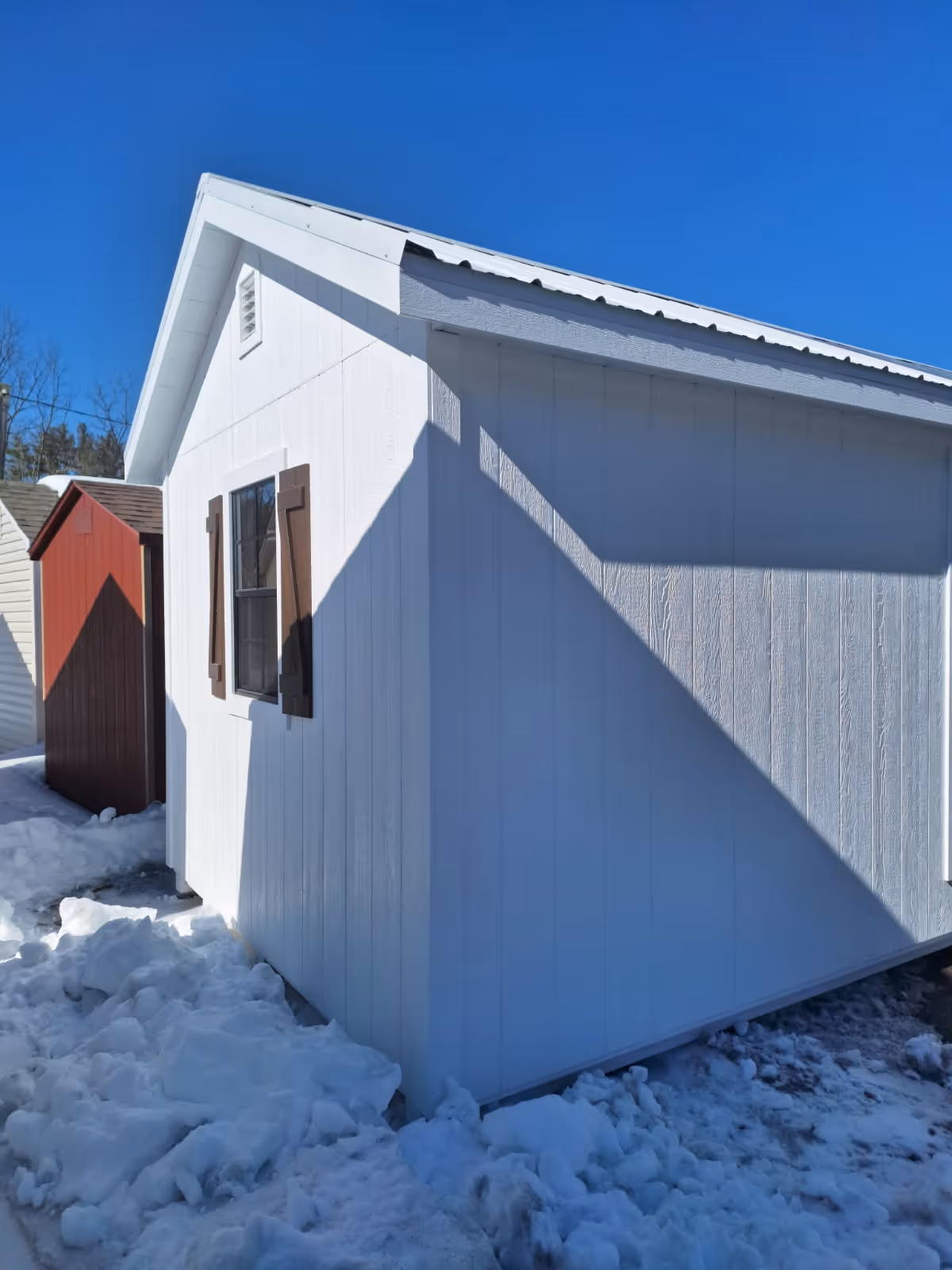 Includes:+LP Smart Siding(White)+White Trim+Clear Suntuff Skylight Roof+2 End Vents+3' Transom Dutcha Door+6' Transom Double Door(1) 18x27 Shed Window w/Shutter+Triple Stack Windows w/Transom Windows+2x4 Framing 16" OC+4x4 PT Runners