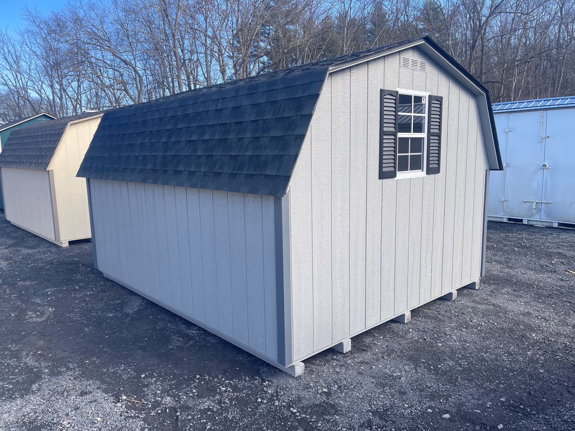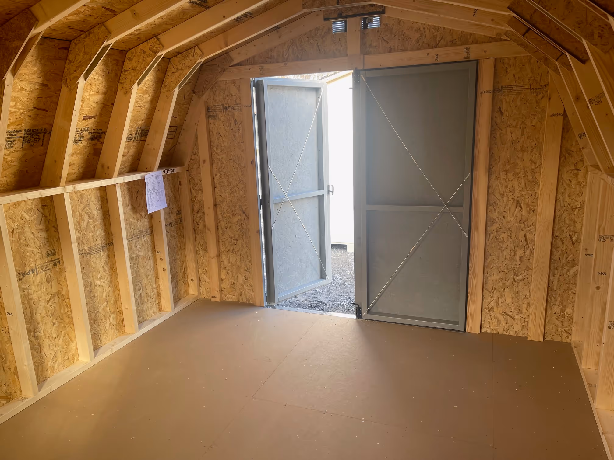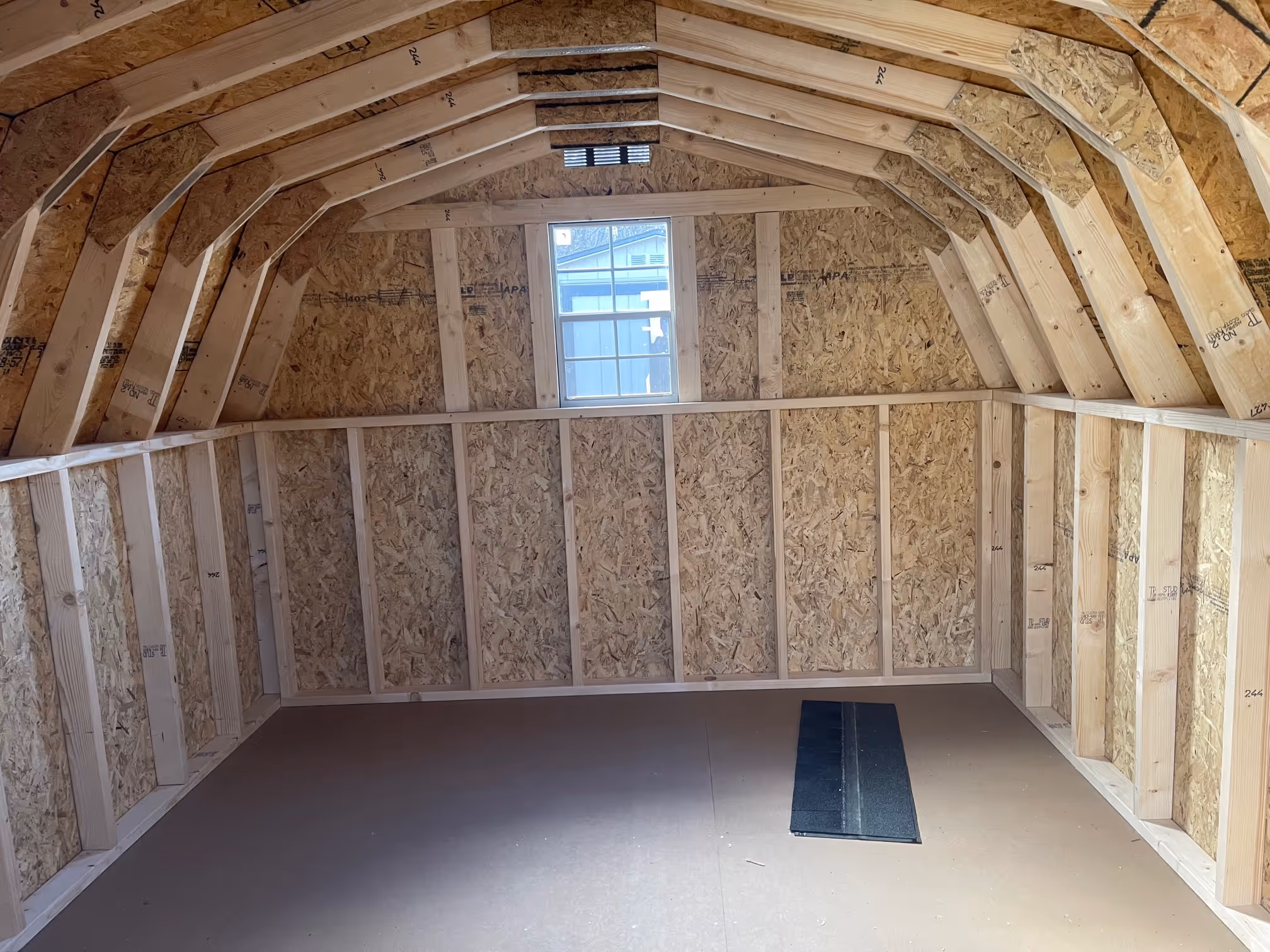 Includes: + LP Smart Flooring + LP Smart Siding(Ronk Gray) + DK Gray Trim + 30 YR ARC Shingles(Charcoal) + 5' DOuble Door + (1) 18x27 Shed Window w/Shutter + 2 End Vents + 2x4 Framing 16" OC & 12" OC Floor Joist + 4x4 PT Runners