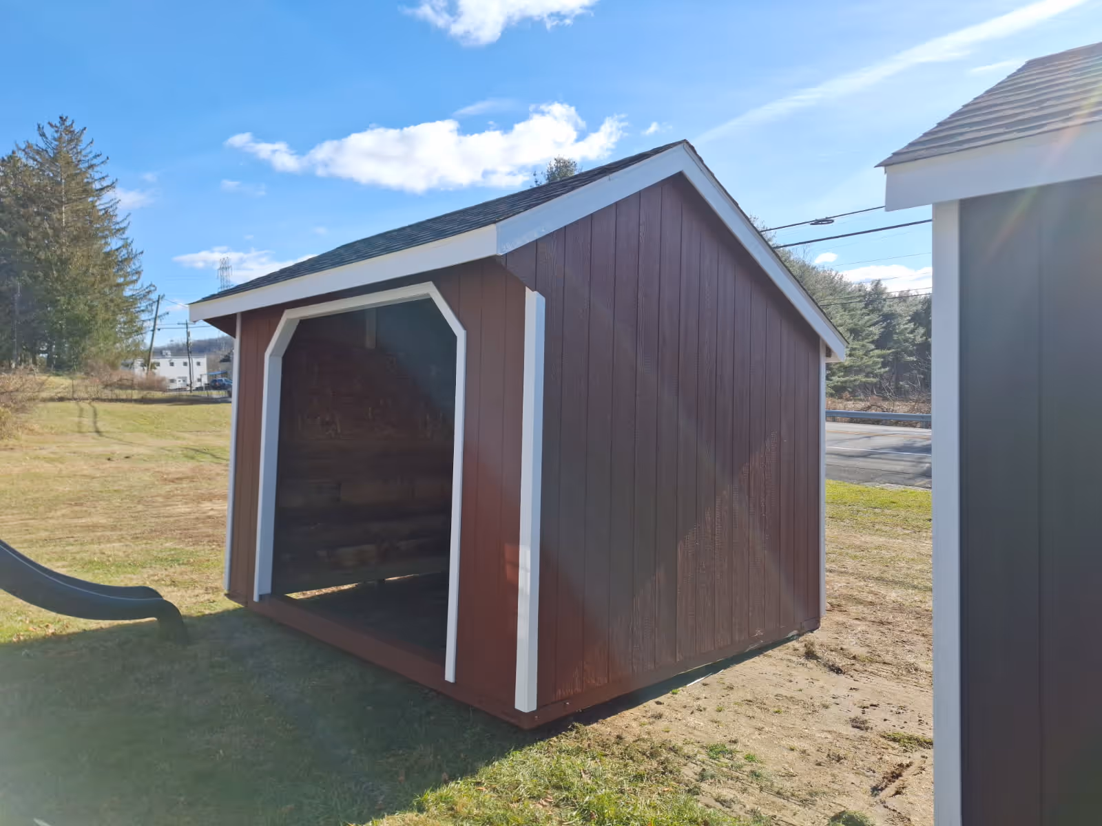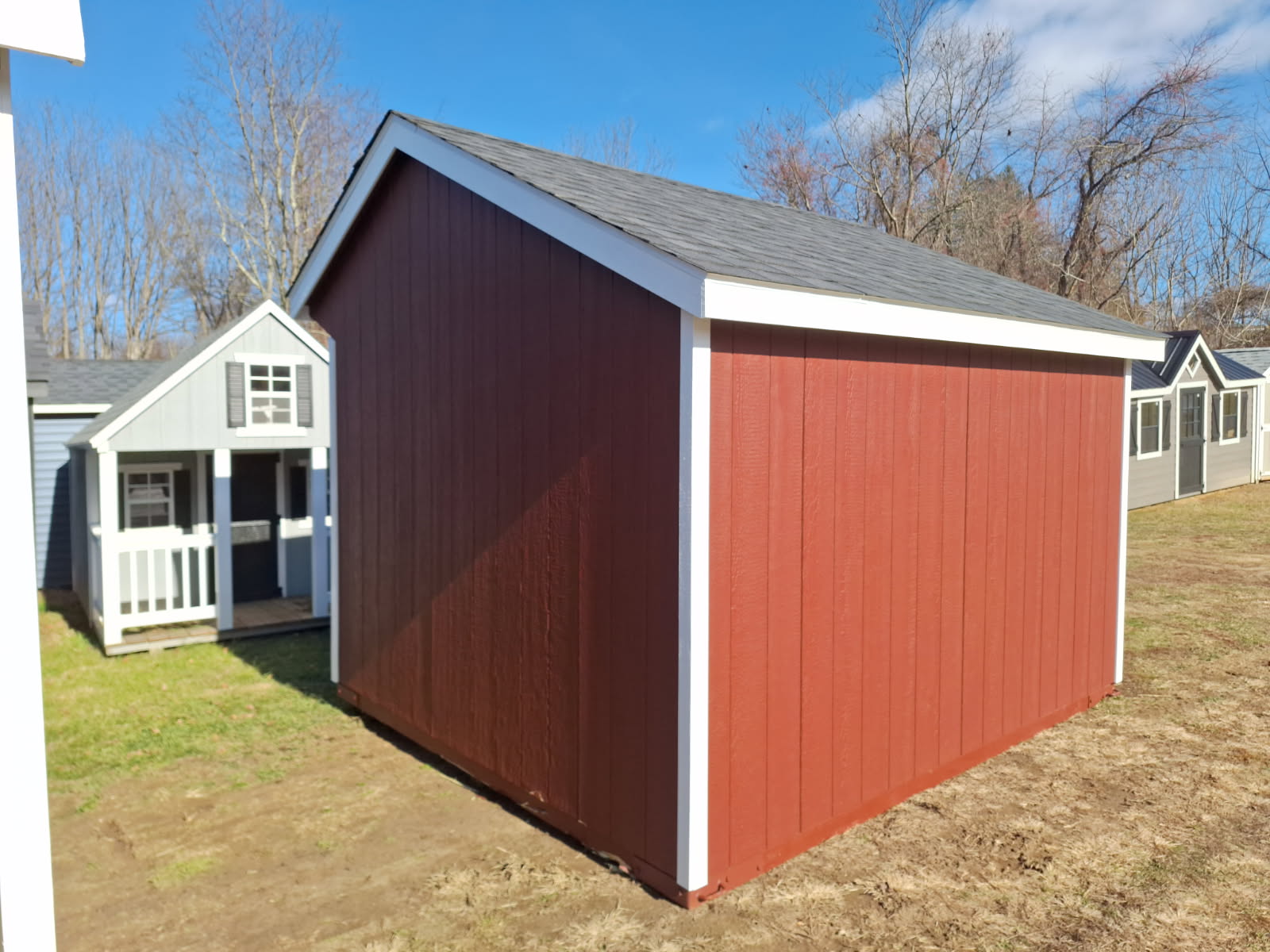 Includes: +LP Smart Siding(Barn Red), +White Trim, +30 YR ARC Shingles(Dual Black), +8' Opening, + 4' High Oak Kickboard w/OSB on top.