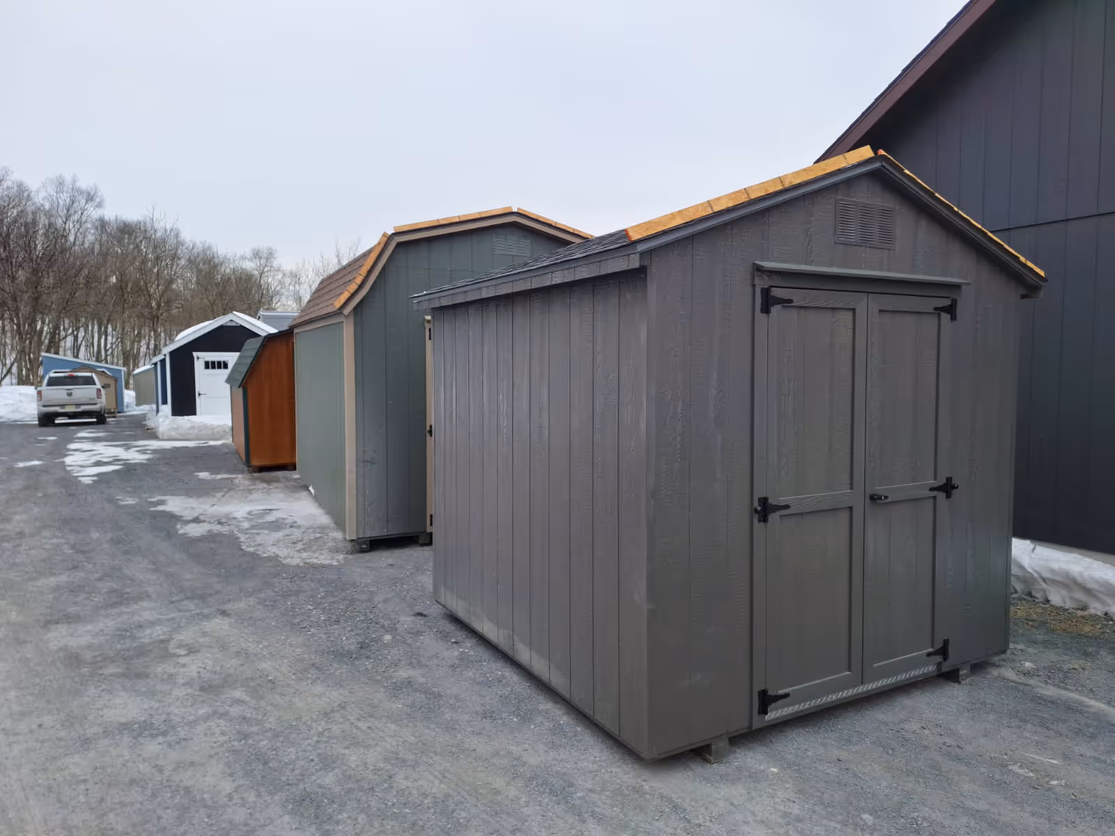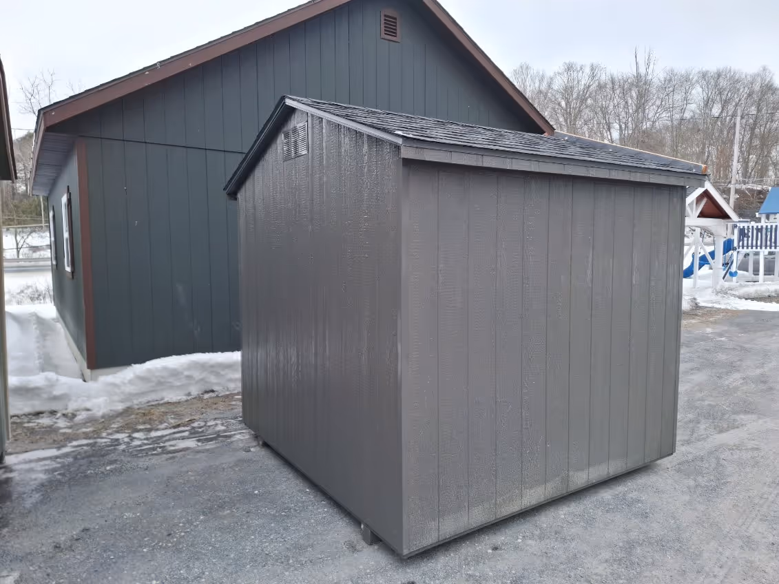 Includes:+ LP Smart Siding(Barnwood Gray)+ Barnwood Gray Aluminum Corner Trim+ 30 YR ARC Shingles(Black)w/Tar Paper+ (1) 4' Double Door+ 2 End Vents+ 2x4 Framing 16" OC+ Tread Plate at Door+ (2) 4x4 PT Runners