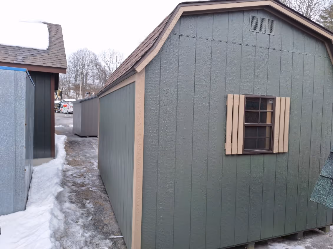 Includes:+ LP Smart Siding(Avocado)+ Buckskin Trim+ 30 YR ARC Shingles(Dual Brown)+ (1) 18x27 Shed Window w/Shutters+ 5' Double Door+ 4x10 Loft+ TechShield roofing+ 2x4 Framing 16" OC+ 2 End Vents+ 4x4 PT Runners