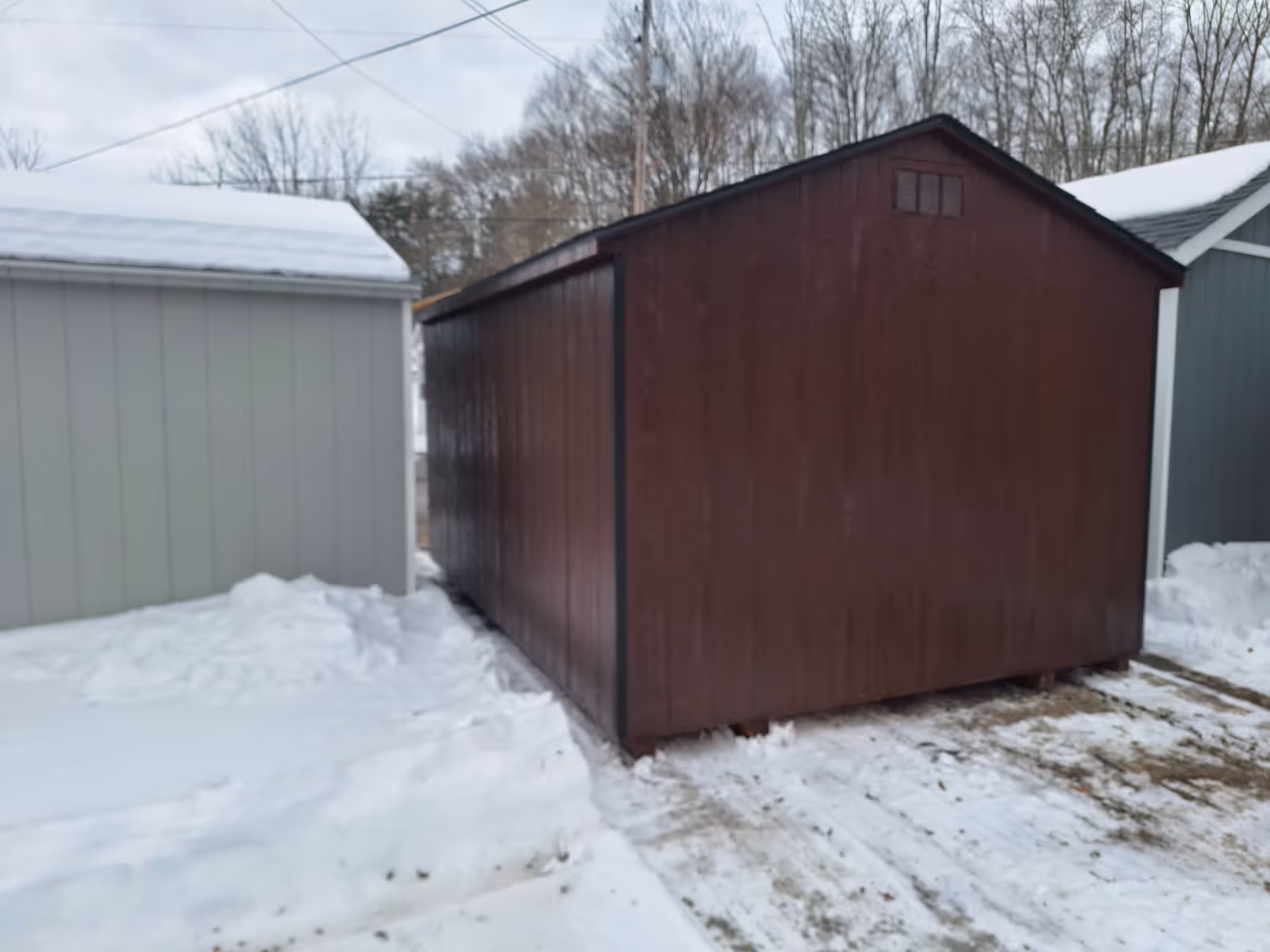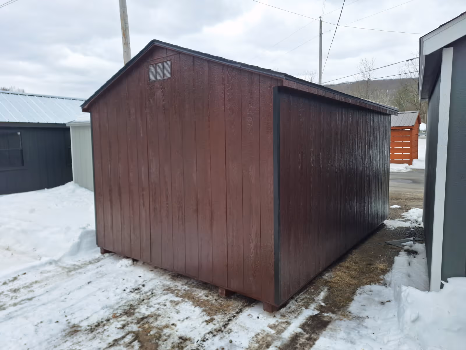 Includes:+ LP Smart Siding(Mahogany)+ Black Trim+ 30 YR ARC Shingles(Black) w/OSB Tar Paper+ 2 End Vents+ 5' Double Door+ 2x4 Framing 16" OC+ LP Smart Flooring+ 4x4 PT Runners