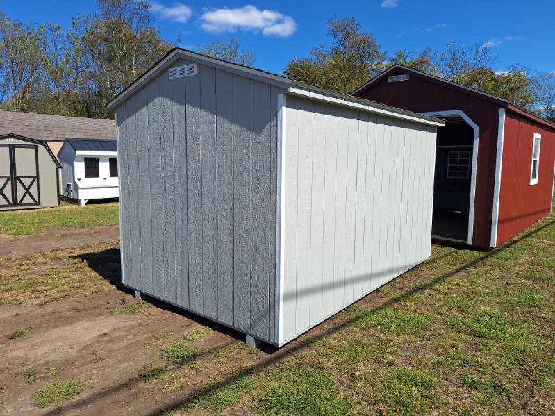 Includes: + LP Smart Panel Siding (Lt Gray) + 30 Yr ARC Shingles (Pewter Grey) + Trim (White) + 2x3 Framing 24" OC + 4x4 PT Runners + LP Smart Floor + 4' Double Door + (2) Regular End Vents + (2) Windows