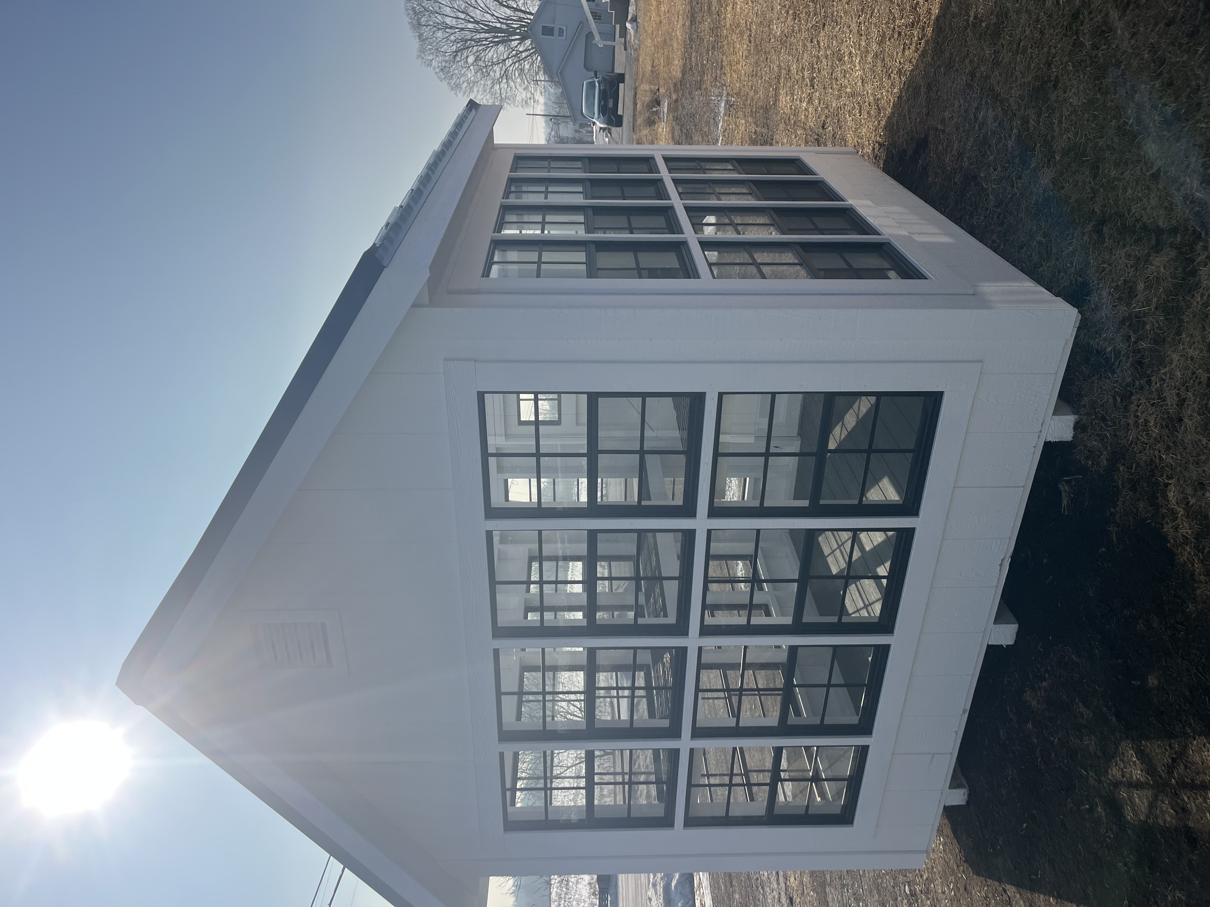 Includes:+LP Smart Siding(White), +White Trim, + Clear Suntuff Skylight Roof, +2 End Vents w/Inside Doors, +Auto Roof Vent, +3' Transom Dutch Door, +Double 18x27 Stack Windows, +24" Lifetime Benching, +Trex Flooring, +2x4 Framing 16" OC, +PT Runners