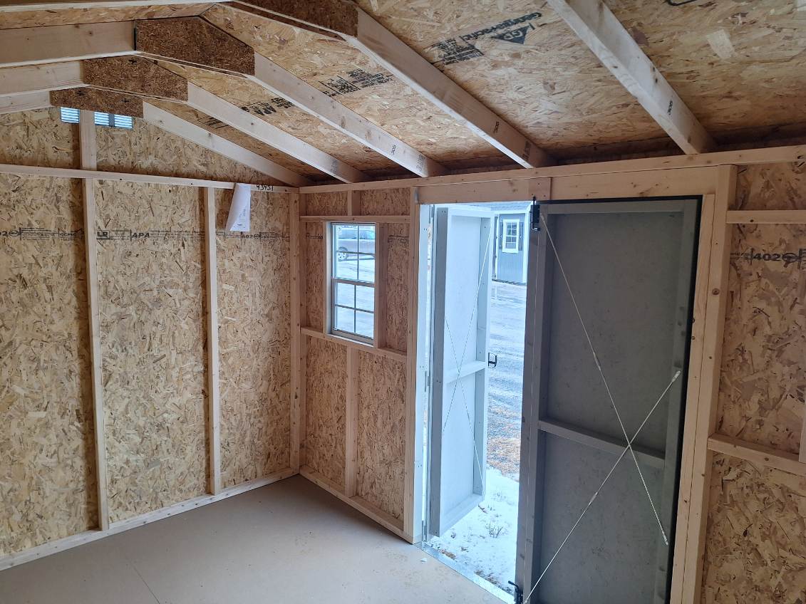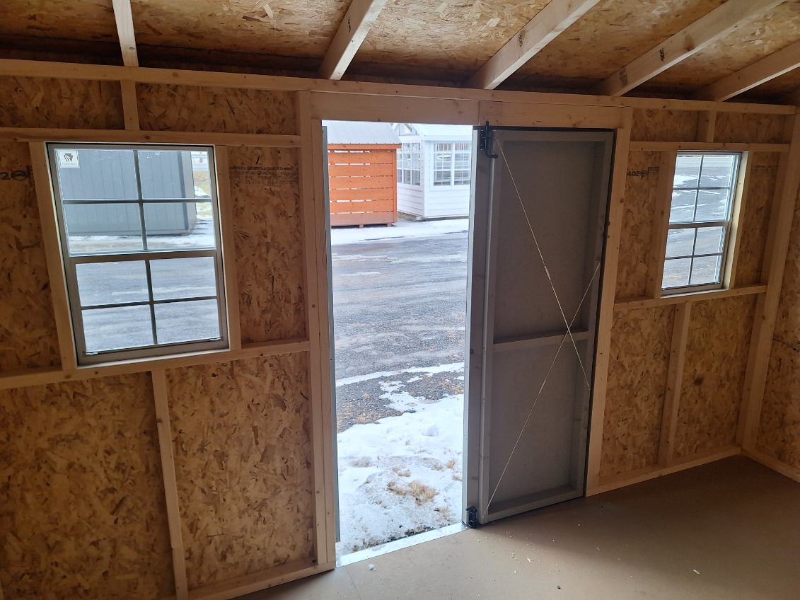 Includes:+LP Smart Siding(LT Gray), +White Trim, +30 YR ARC Shingles(Pewter Gray), +2 Shed Windows, +4' Double Door, +2 End Vents, +2x4 Framing 16" OC & 12" OC Floor Joist, + 4x4 PT Runners