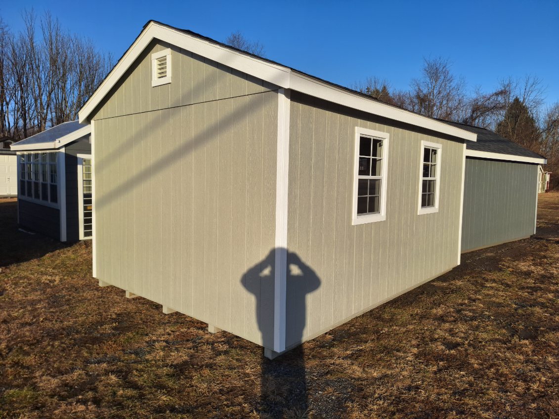 Includes:+LP Smart Siding(Zook Gray), +White Trim, +30 YR ARC Shingles(Dual Black), +4 Shed Windows, +6' Double Door w/Transom Windows, +Ridge Vent, +2 End Vents, +2x4 Framing 16" OC & 12" OC Floor Joist, +4x4 PT Runners