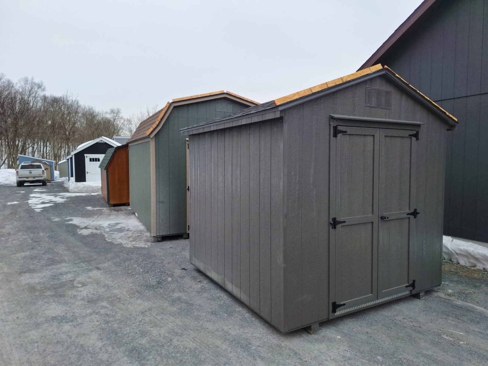 Includes:+LP Smart Siding(Barnwood Gray), +Barnwood Gray Aluminum Corner Trim, +30 YR ARC Shingles(Black)w/Tar Paper, +(1) 4' Double Door, +2 End Vents, +2x4 Framing 16" OC, +Tread Plate at Door, +(2) 4x4 PT Runners