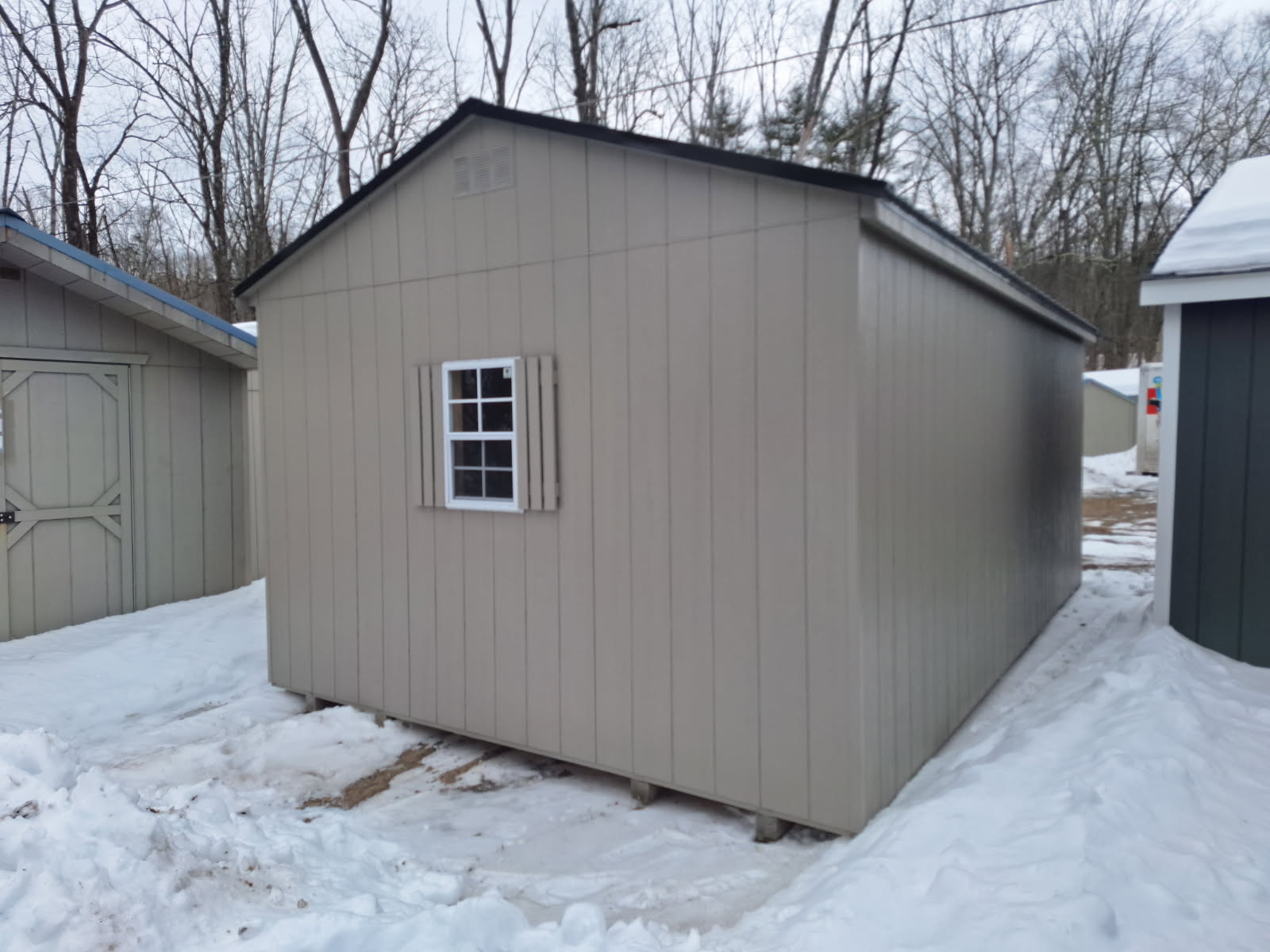 Includes: +LP Smart Siding(Clay), +Clay Trim, +Metal Roof(Black), +2 End Vents, +(1) 18x27 Shed Window w/Shutter, +6' Double Door, 6x12 Loft, +2x4 Framing 16" OC, +LP Smart Flooring, +4x4 PT Runners