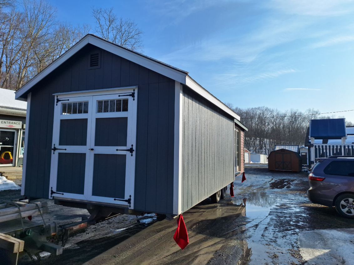 Includes:+LP Smart Siding(Dark Gray), +White Trim, +30 YR ARC Shingles(Gray), +2 End Vents, +(2) 18x27 Shed Windows w/Shutters, +3' Single Wood Door w/Transom window, +6' Double Wood Door w/Transom Windows, +10" Decorative Hinges, +2x4 Framing 16" OC, +4x4 PT Runners, +6' Ramp