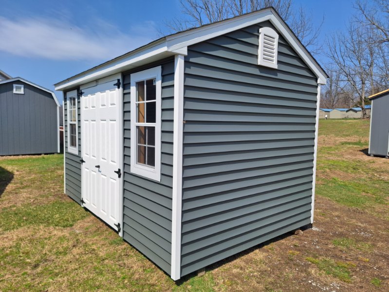 Includes:+Lifetime vinyl Siding(Alpine Forest), +White Trim, +30 YR ARC Shingles(Charcoal), +LP Tech Shield Roof Sheathing, +2 Deluxe Vents, +(2) 18x27 Shed Windows, +4' Double Door, +2x4 Framing 16" OC Walls & Ceiling, +LP Smart Flooring, +12" OC Floor Joist, +4x4 PT Runners