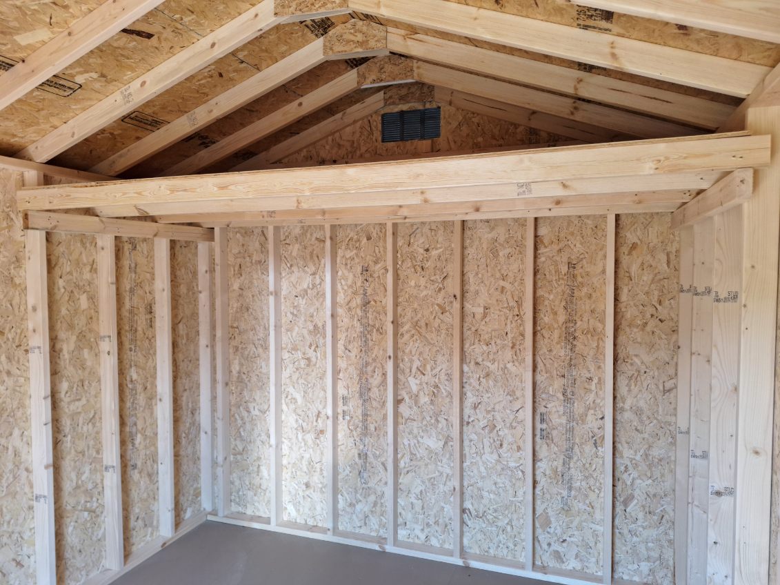 Includes:+LP Smart Siding(Dark gray)+Gap gray trim+30 YR ARC Shingles(Charcoal gray)+4' Double Wood Door+2 End vents+4x10 Loft+16" OC Walls & Ceiling+LP Smart Flooring+4x4 PT Runners