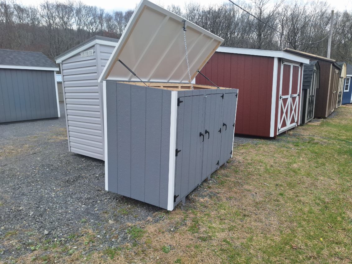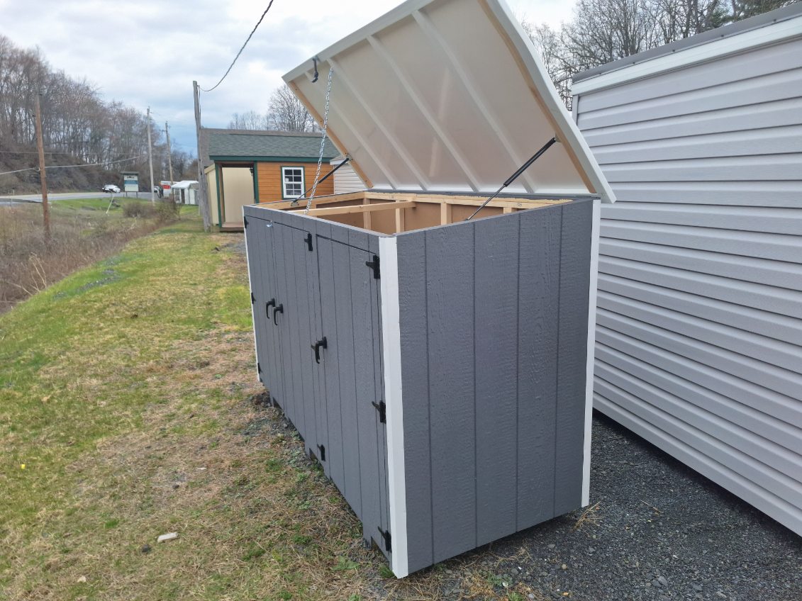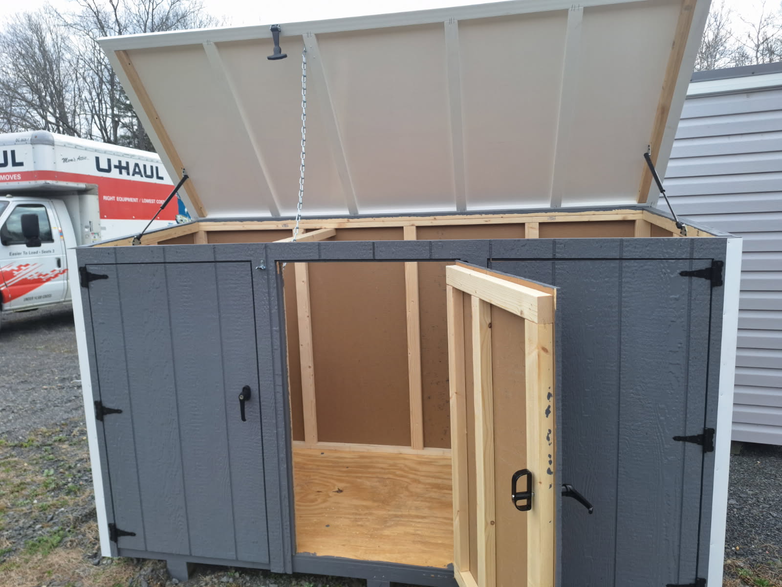 Includes:+LP Smart Siding(Dark Gray), +White Trim, +PVC Lid(White), +(3)Doors 27''x46'', +4x4 Pt Runners, + Plywood Floor, + 2x3 Framing