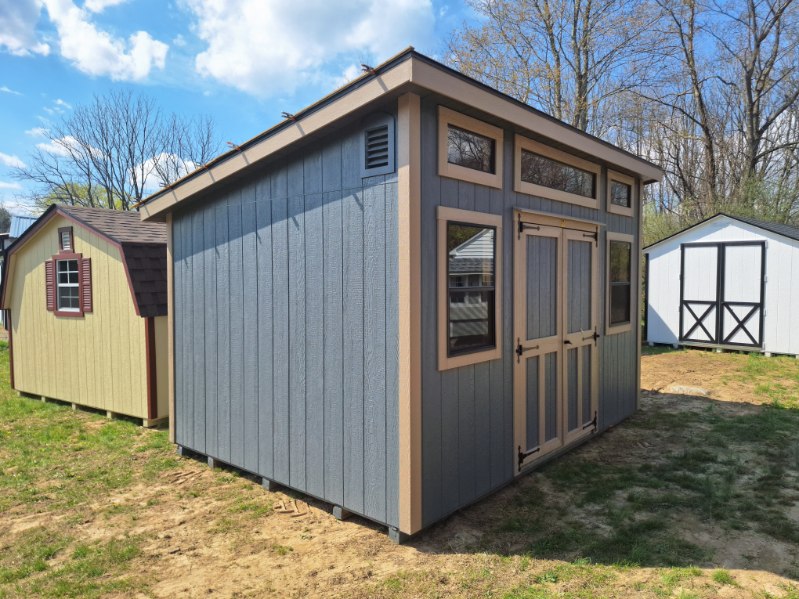 Includes:+LP Smart Siding(Dark Gray), +Buckskin Trim, +30 YR ARC Shingles(Earthtone), +2 End Vents, +5' Double Wood Door, +(2) 24x36 Shed Windows, +(1) 60"x10" Transom Window No Grid, +(2) 24"x10" Transom windows no Grid, +2x4 Framing 16" OC, +5/8" LP Smart flooring, +4x4 PT Runners